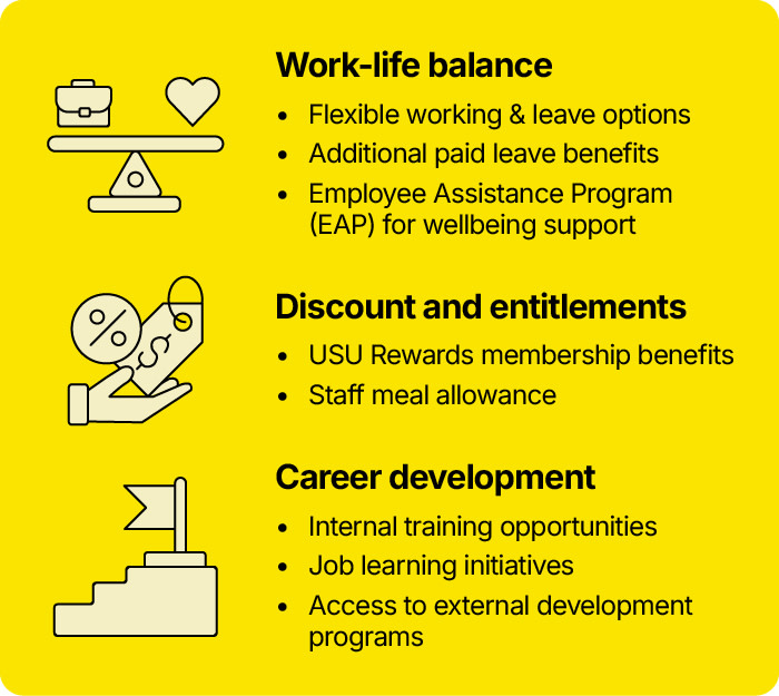 Working at USU, you will be directly involved with our members and customers. Whether your career choice is front line hospitality or professional services, we offer opportunities for permanent, fixed term and casual employment. We also have specific student roles, including internships and volunteering opportunities designed to fit in with your academic timetable.