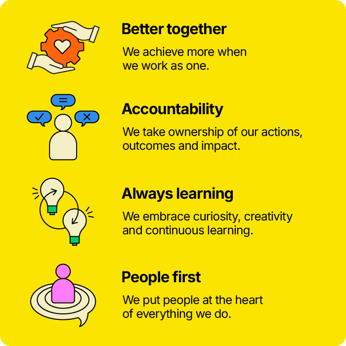 Our values are what we stand for - the set of core beliefs that guide how we operate and act as both an organisation and as individuals. USU’s staff have identified the behaviours that are important to us and what we aspire to be known for externally.
